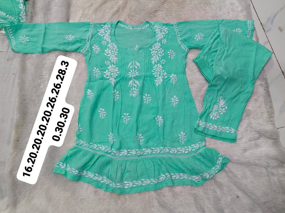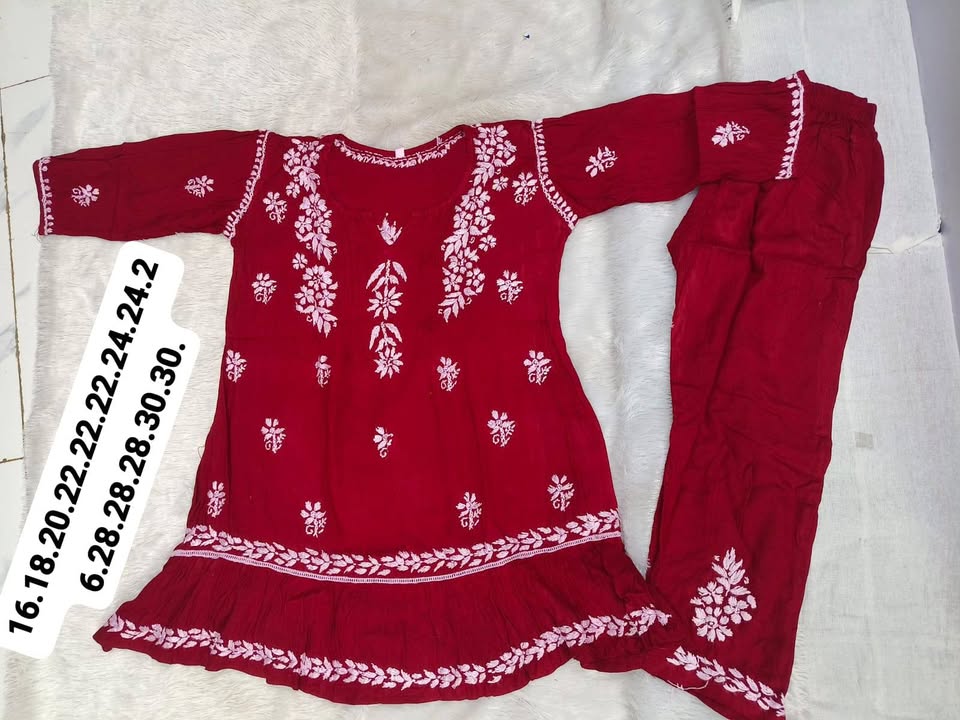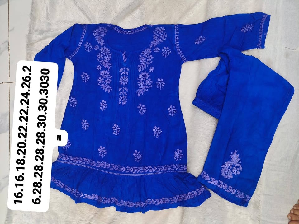 Lucknowi chikankari rayon frock with pant set