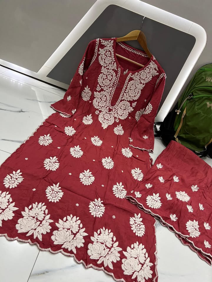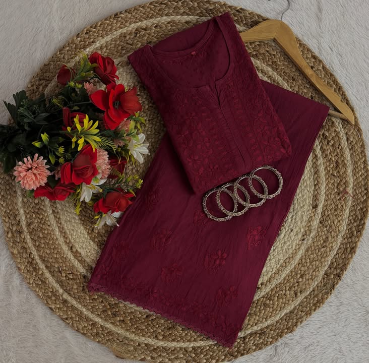 Lucknowi chikankari dobby cotton kurti with plazo lace design set