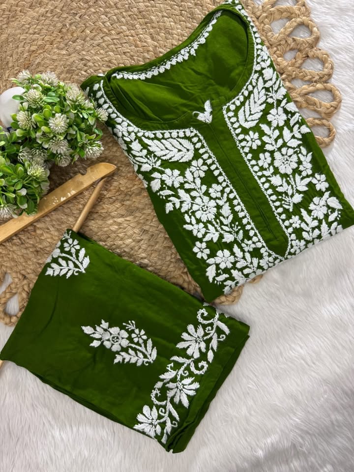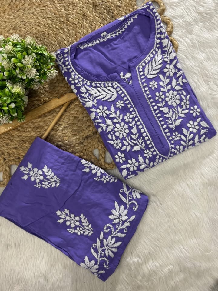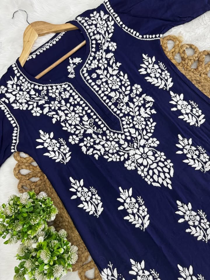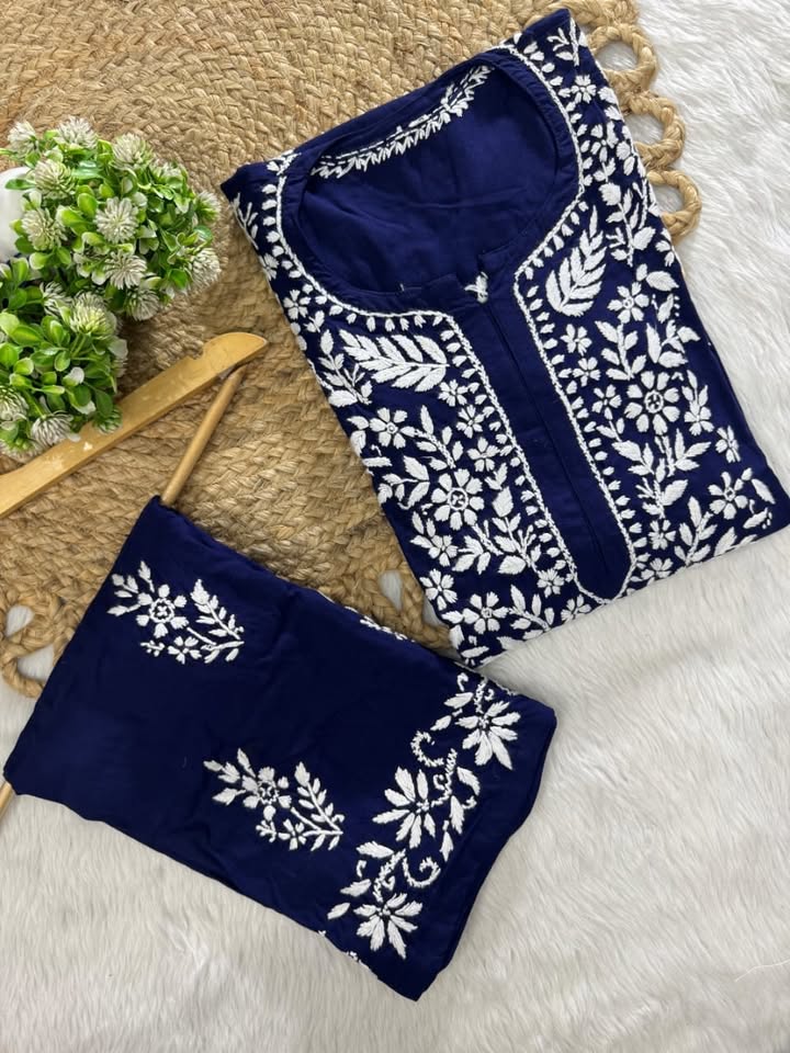 #3595 Lucknowi chikankari premium rayon kurti with plazo set