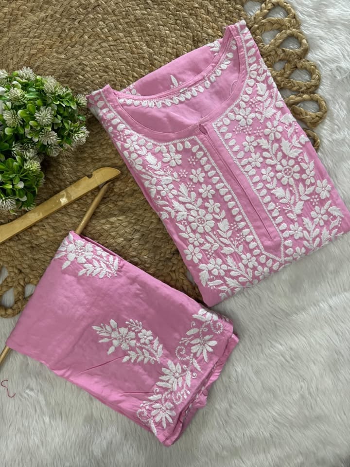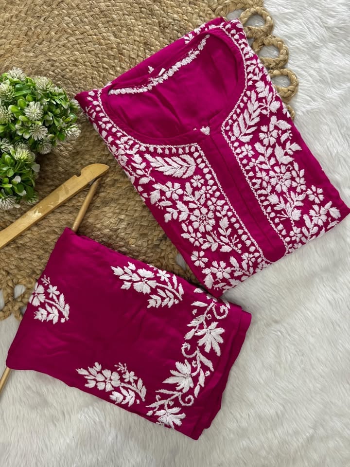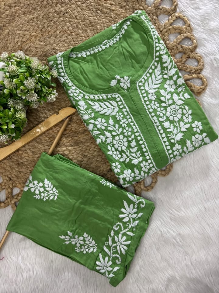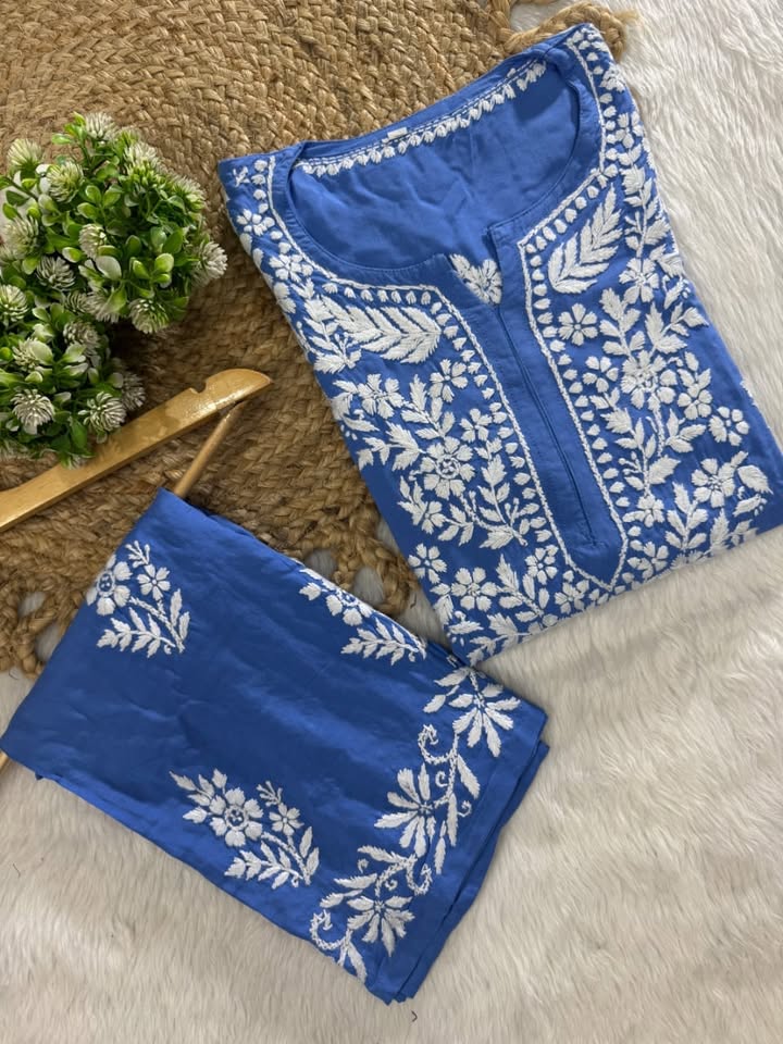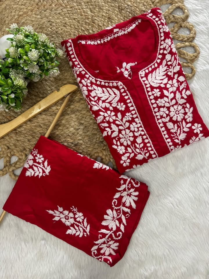#3595 Lucknowi chikankari premium rayon kurti with plazo set