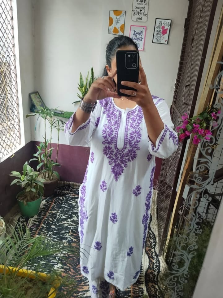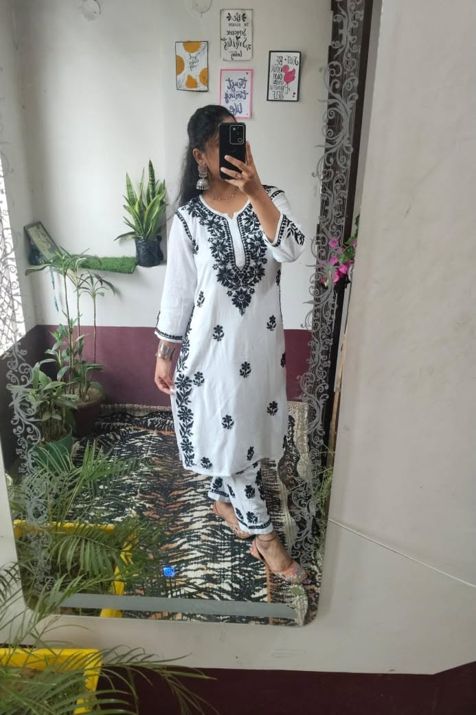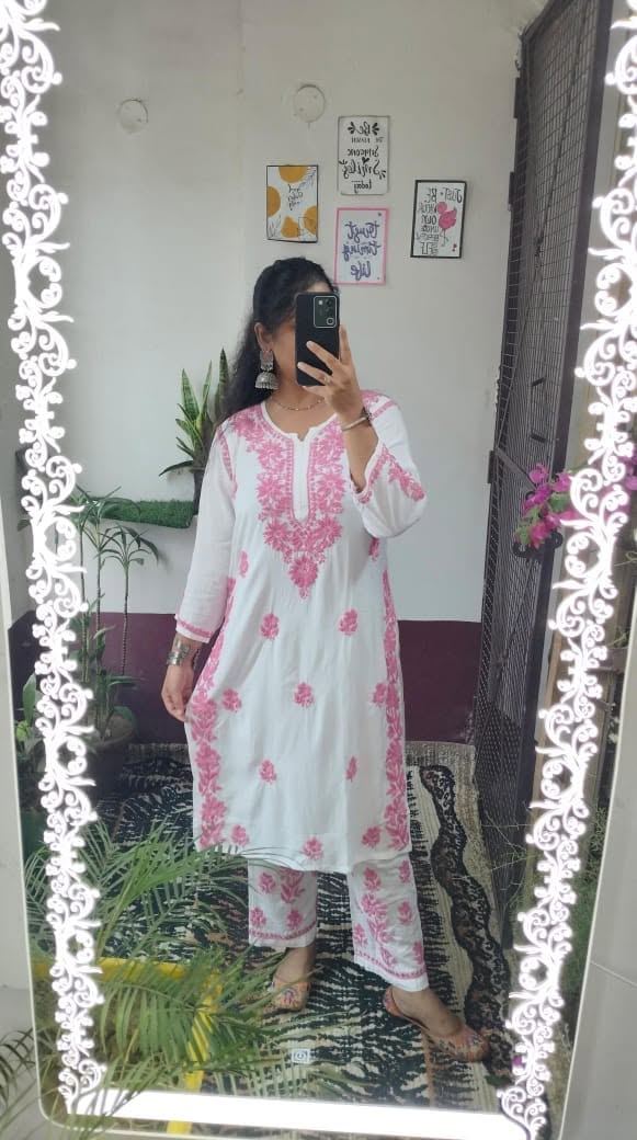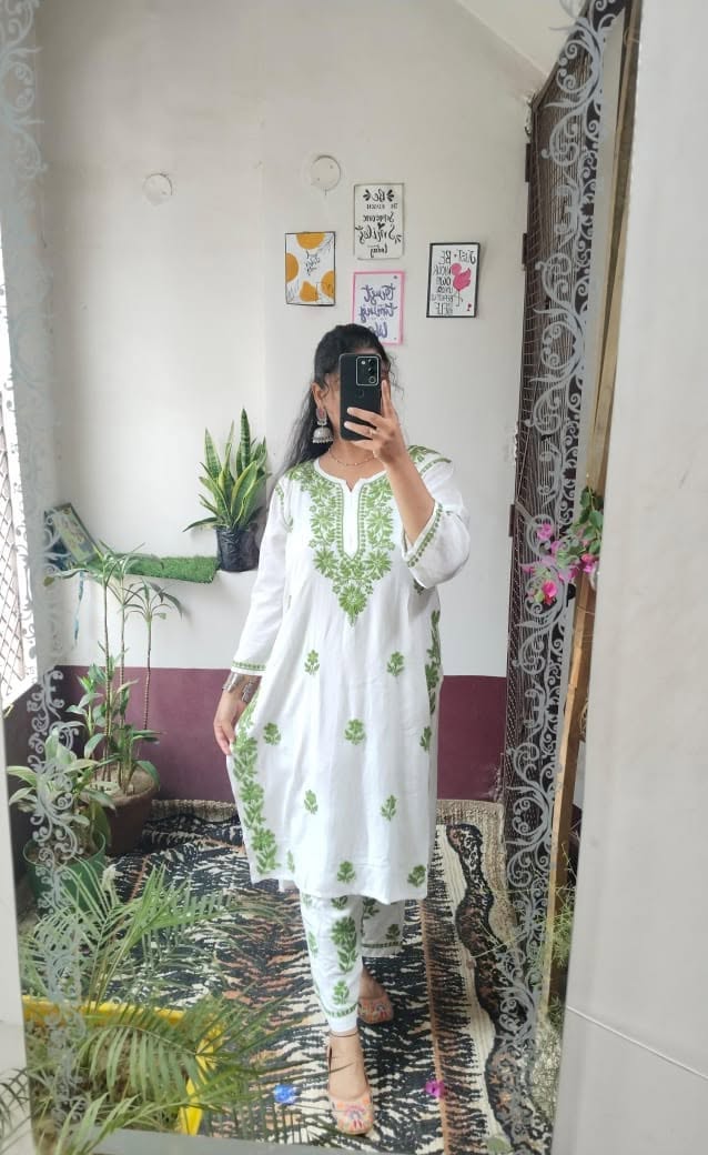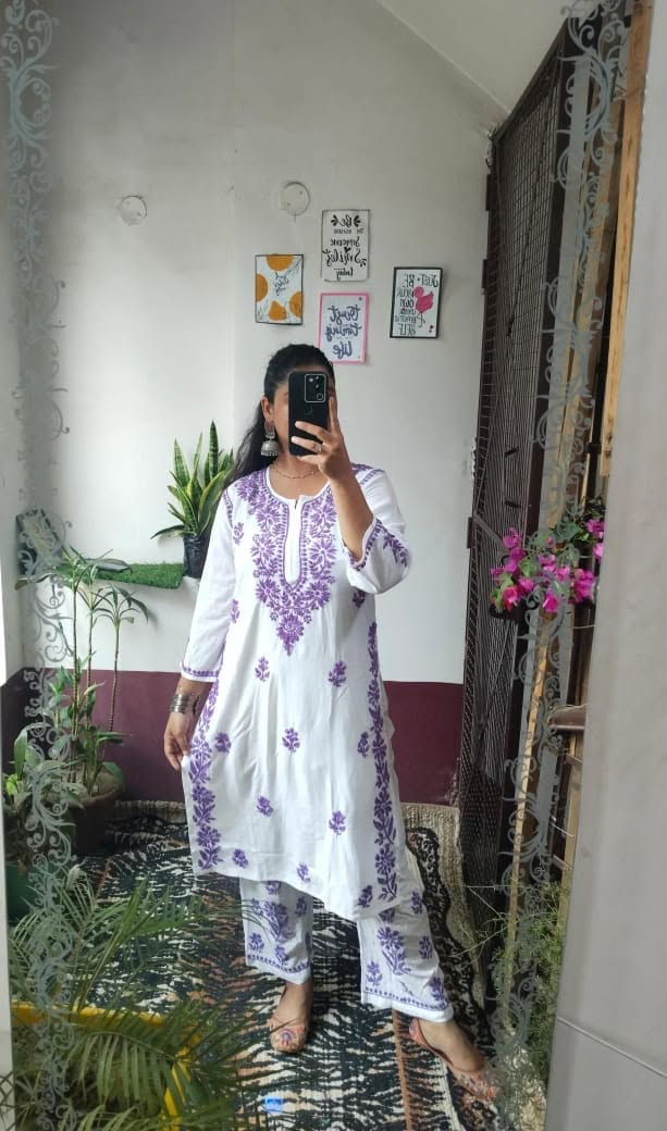 Lucknowi chikankari rayon kurti with plazo set
