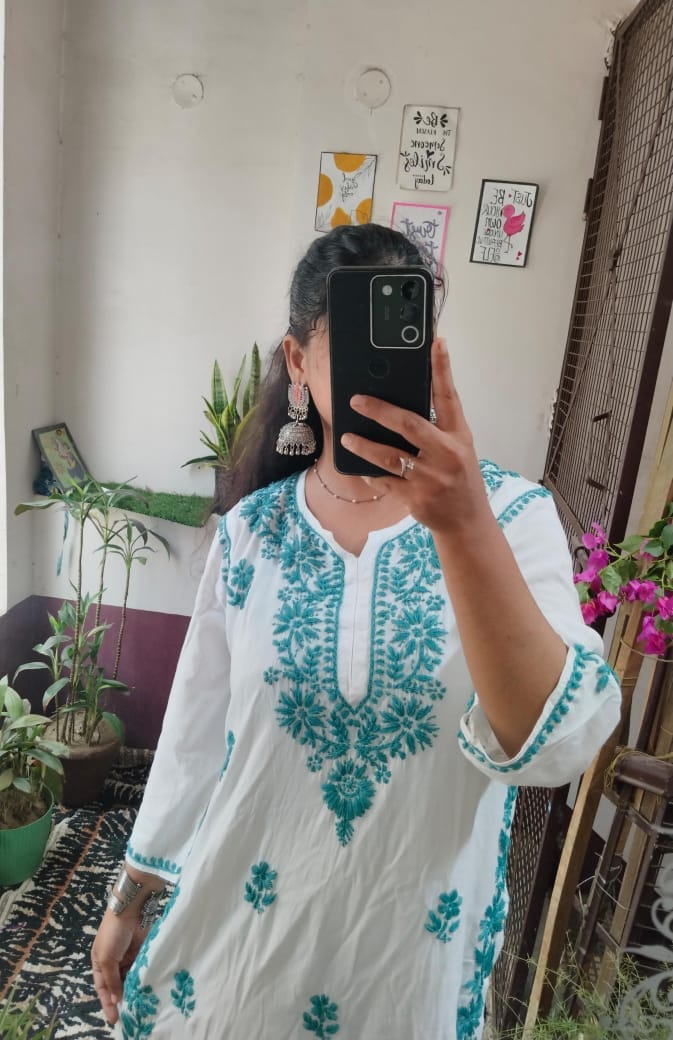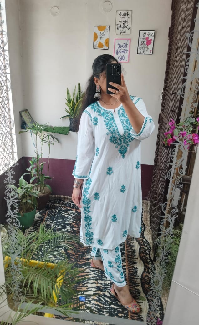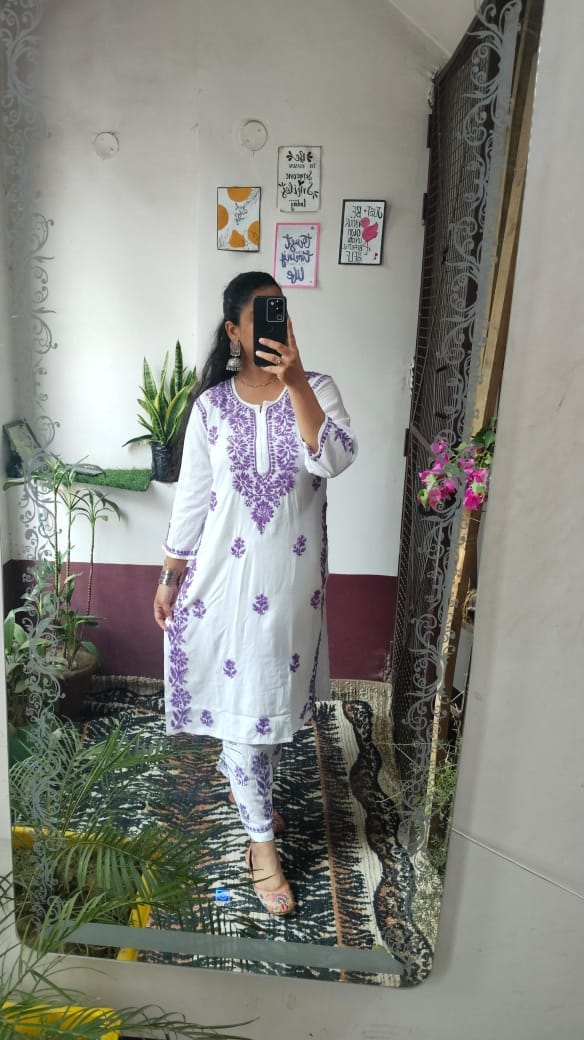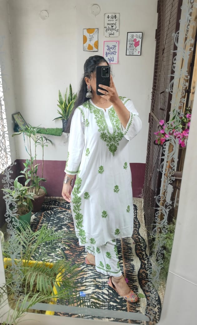 Lucknowi chikankari rayon kurti with plazo set