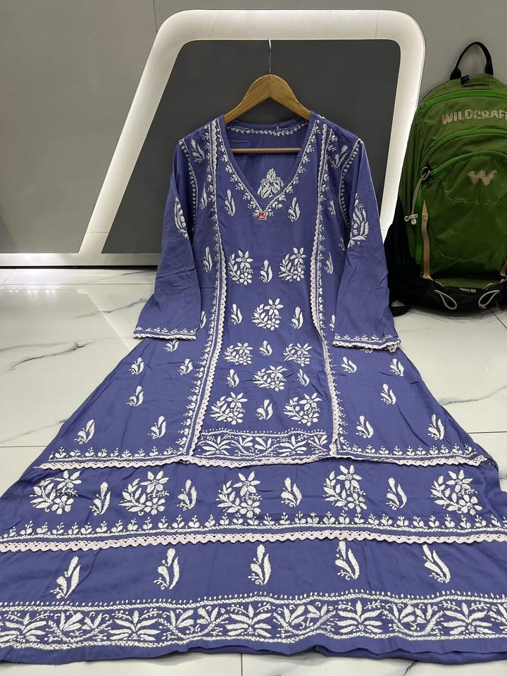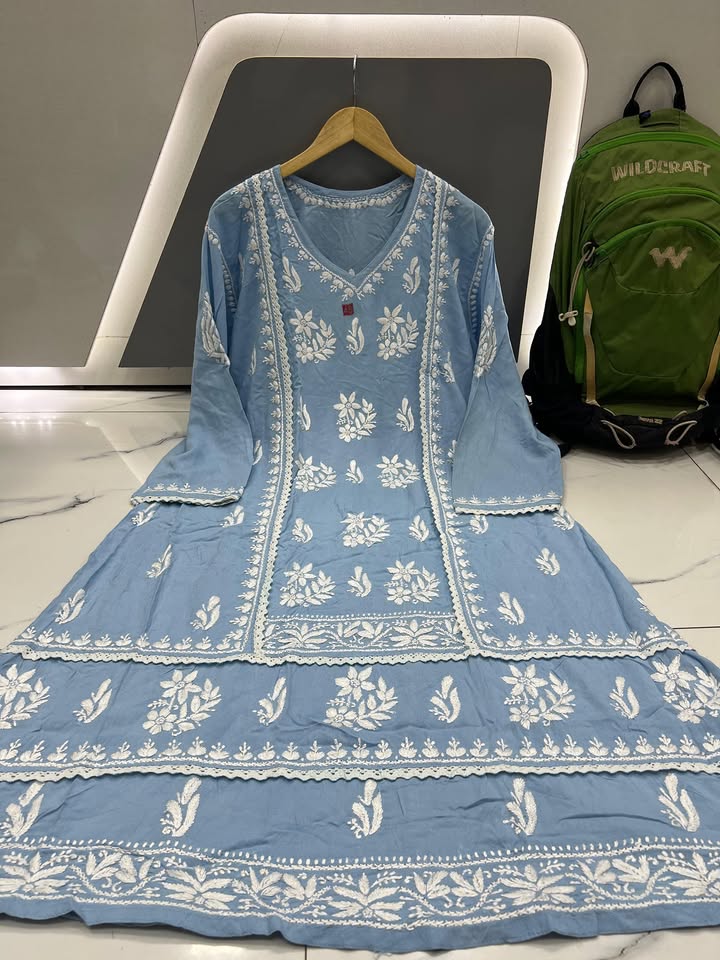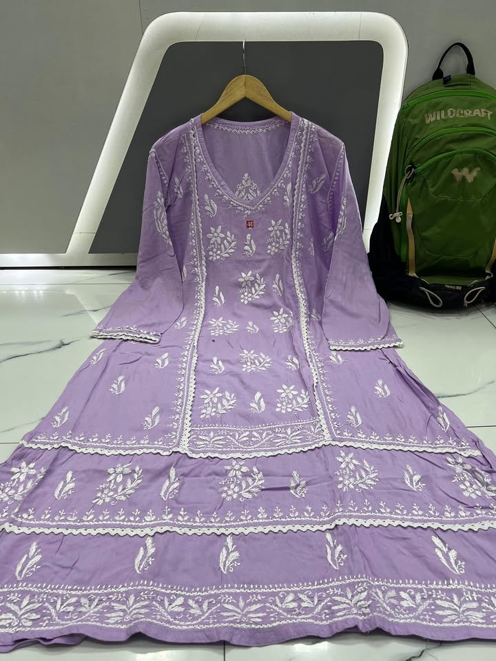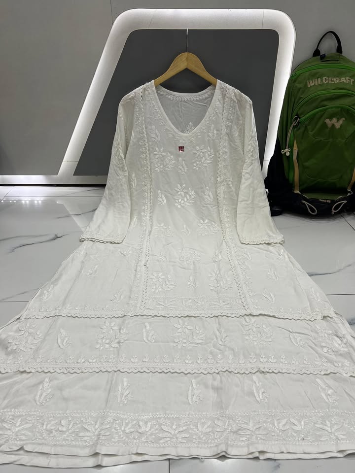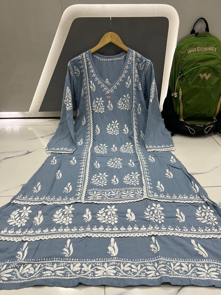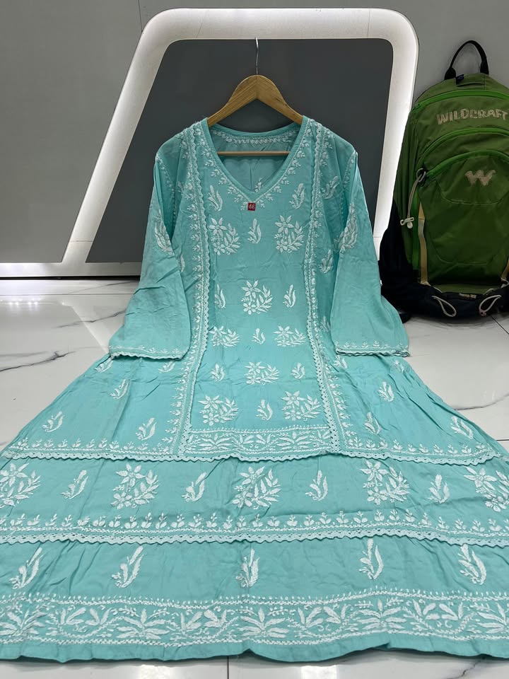 Lucknowi chikankari rayon lace work gown (#3588)