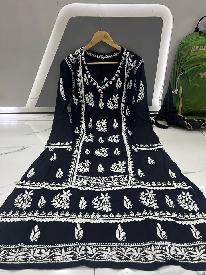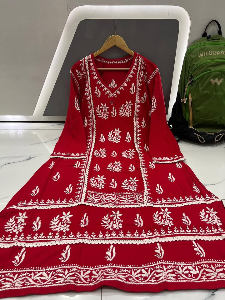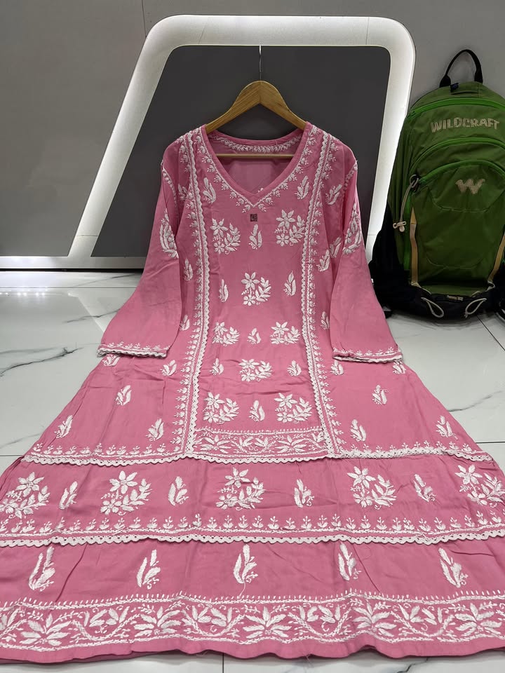 #3588 Lucknowi chikankari rayon lace work gown
