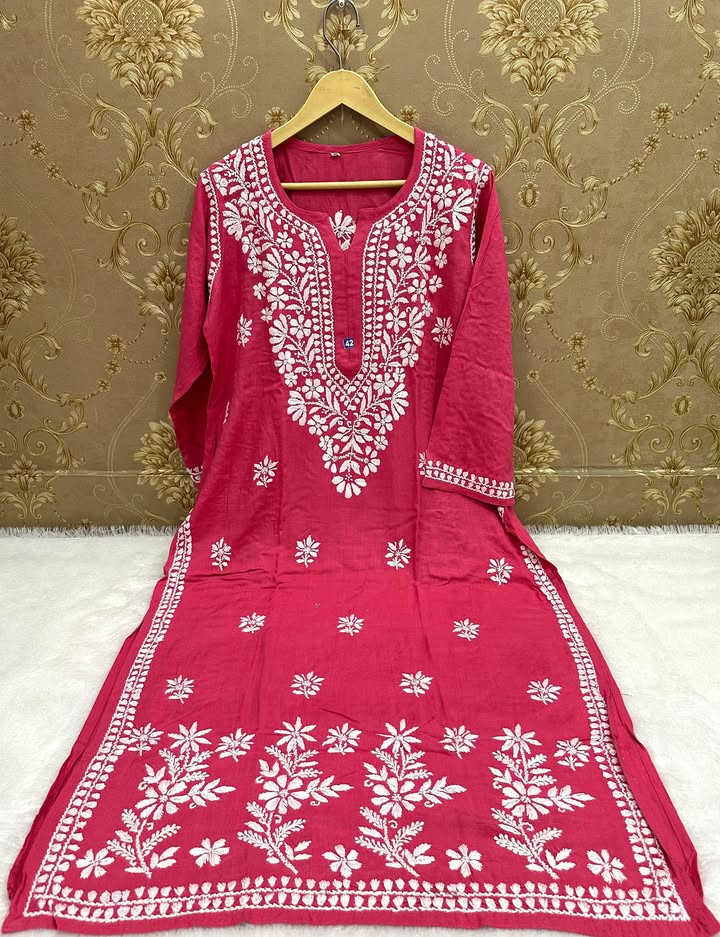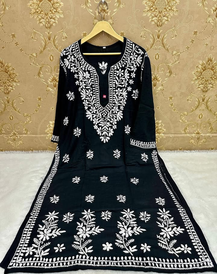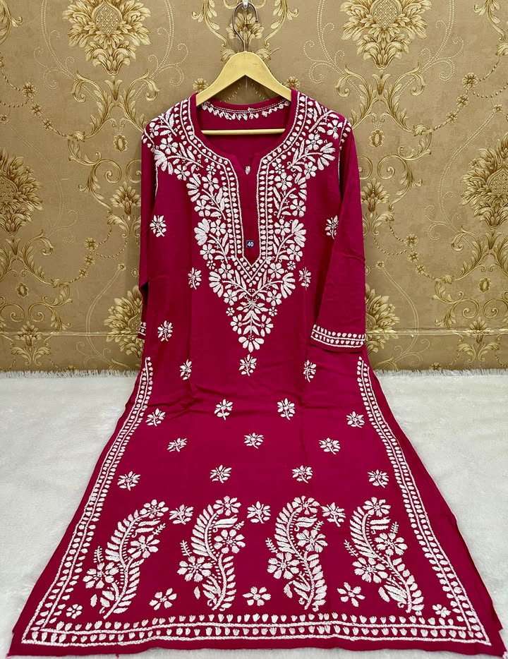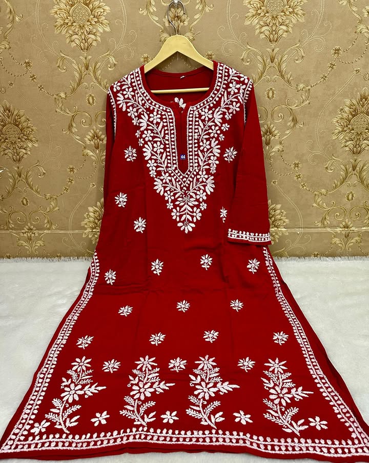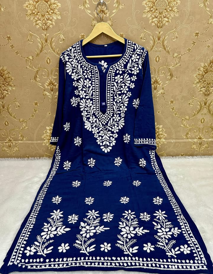 Lucknowi chikankari slub rayon daman gala kurti