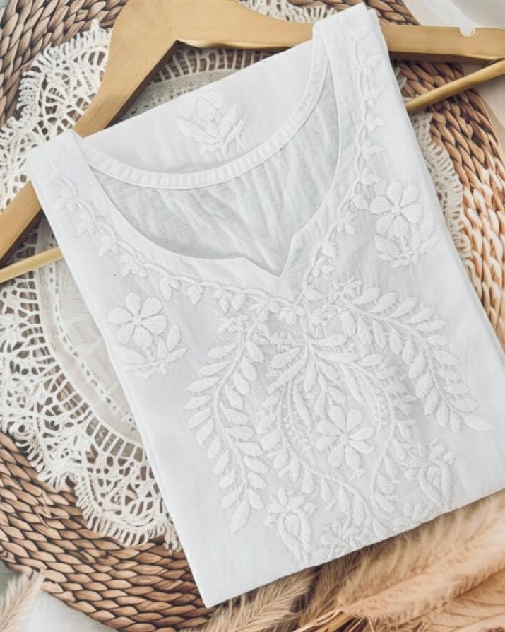 Lucknowi chikankari soft mul mul cotton dyed kurti
